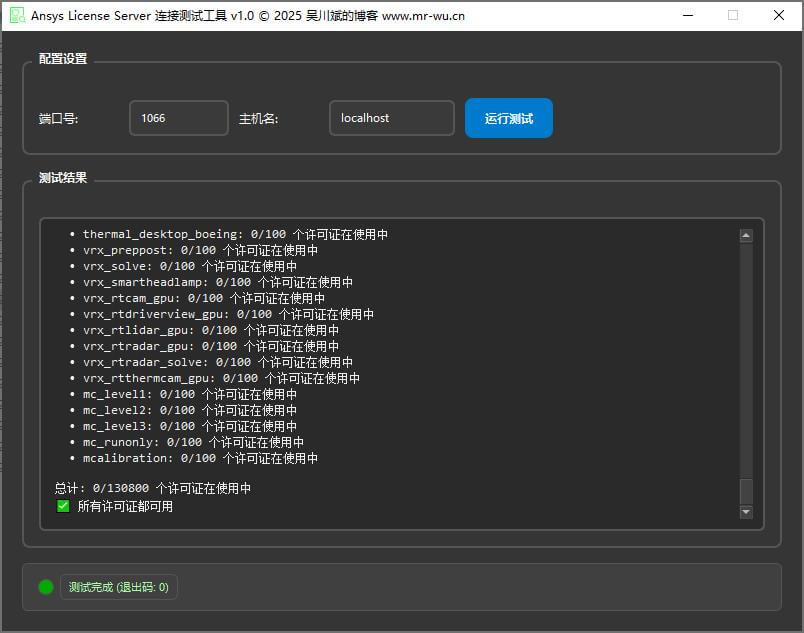 netapi32.dll文件复制到错误路径导致的激活失败问题。完备的License连接验证功能:具有图形化界面的工具,能够便捷地测试 Ansys 许可证服务器(License Server)的连接状态和许可证使用情况。