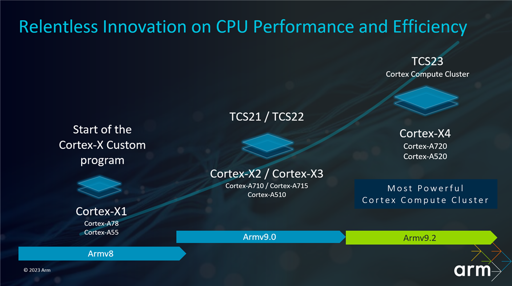 ARM 正式对外宣布推出新的旗舰级内核 Cortex-X4,这也是迄今为止ARM公司所设计的最高性能的核心,也即俗称的超大核,当然,一同发布的的除了超大核的Cortex-X4,还有性能核Cortex-A720以及效率核Cortex-A520。