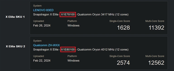而在与苹果的M3处理的性能对比方面,根据GeekBench 6数据库里的数据进行对比,功耗墙为80W的骁龙X Elite最高频率4.0GHz,最好的跑分为单核2574、多核12562,无论是单核性能还是多核性能,比起苹果M3处理器还是差了将近20%,明年的下一代Oryon CPU核心架构还需要继续努力了 💪